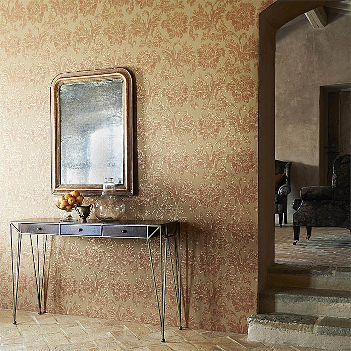 Tadema est extrait du même document, daté du XIXème siècle, que le tissu du même nom et est imprimé par processus Surflex qui combine des encres transparentes avec des émulsions en surface afin de lui donner de magnifiques effets texturés. Tadema est imprimé en 7 coloris sur papier intissé.