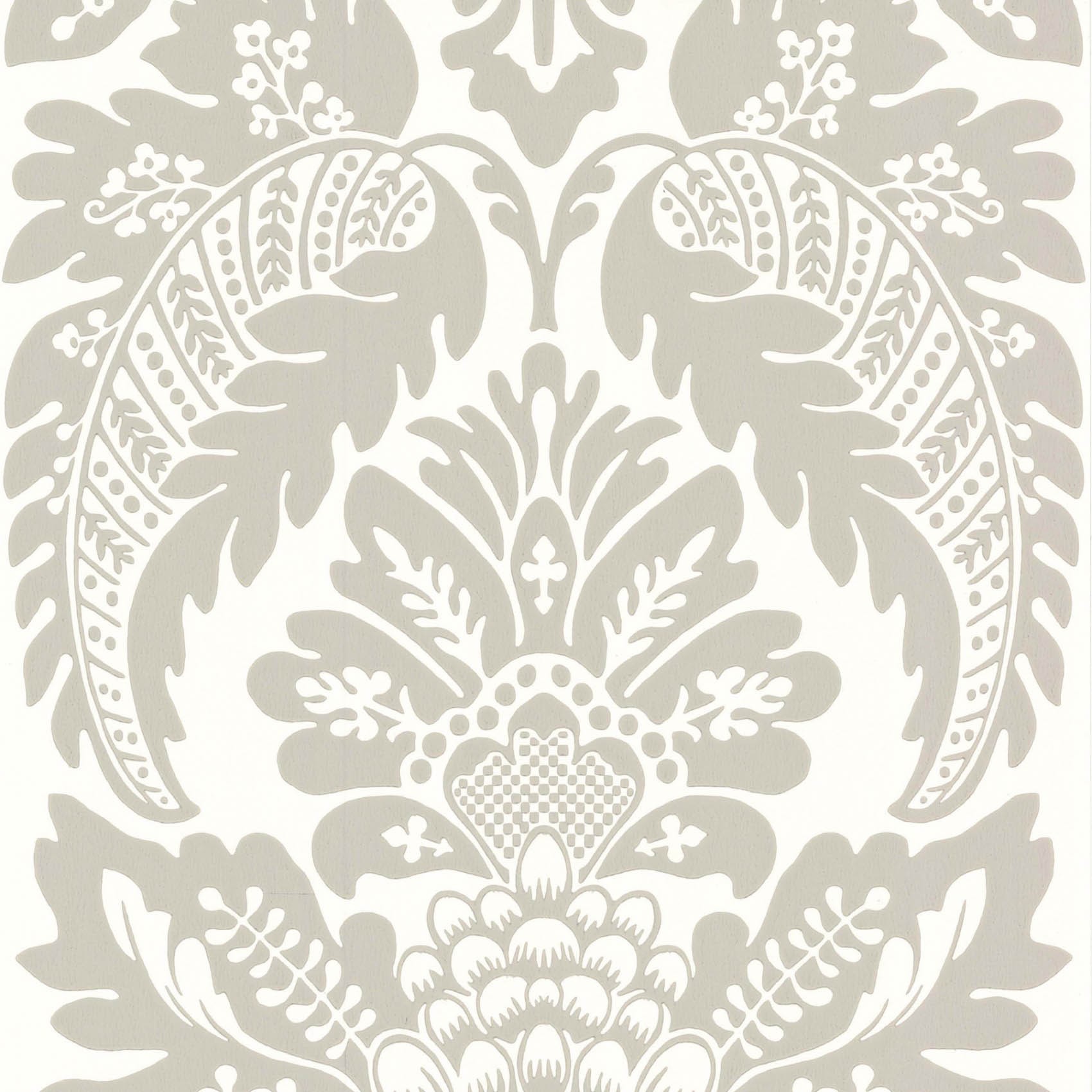 Un design damassé classique typique des modèles de grenade très populaires au milieu du XVIIIe siècle. Celui-ci aurait à l'origine été un papier tontisse et se tapissait dans les grandes maisons anglaises. Les papiers tontisses étaient une spécialité anglaise et étaient vraiment des imitations de textiles couteux. Ils étaient néanmoins aussi chers à produire et un signe extérieur de statut social et de luxe.