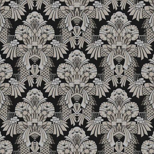 Le papier peint Dorothy, de la collection Folies de Khrôma de Masureel, arbore une composition florale ornée de détails métallisés. Sa texture légère est agrémentée de figures courbes et géométriques qui contrastent avec un fond uni.