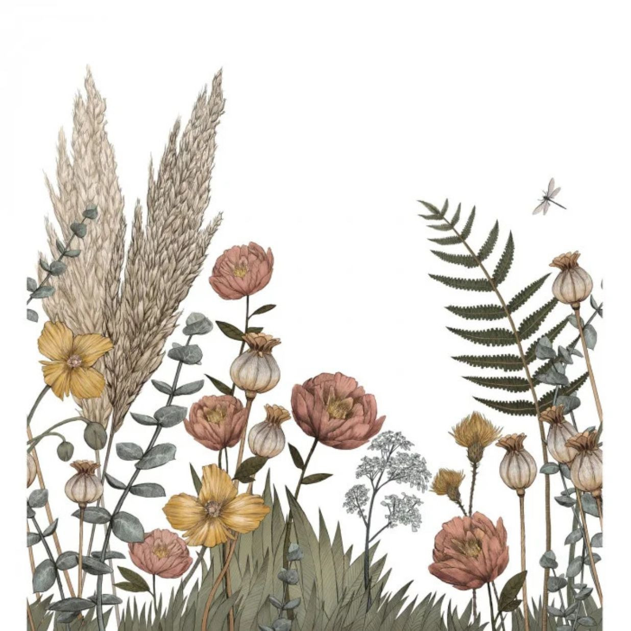 Le papier peint Éclosion de la collection Panoramas de Casamance, avec ses pavots et herbes de pampa, apporte une ambiance bucolique et poétique à votre intérieur. Ce panoramique a été dessiné à la main pour une touche unique.