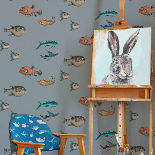 Le papier peint Peces Santamans de la collection 40th Anniversary de Coordonné conçu par Joana Santamans, nous plonge dans les profondeurs marines avec ses motifs. Sur un fond uni apaisant, il dévoile des poissons-lunes, des poissons-volants et des espèces mystérieuses issues des abysses, imaginés par Joana Santamans, une designer passionnée par la nature aquatique.