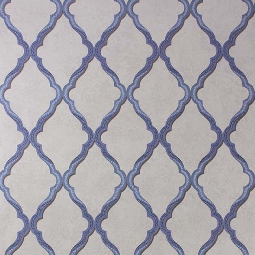 Le papier peint Jali Trellis de la collection Durbar d'Osborne & Little tire son nom des écrans en treillis, ou "Jali", typiques du style moghol. Il présente un motif de treillis sur des fonds métalliques, reflétant l'élégance de ce design architectural.