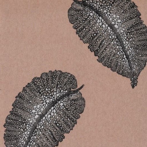 Papier peint Paraggi de la collection Manarola par Osborne & Little représente une grande feuille stylisée rehaussée de touches métalliques, sur un fond uni contrastant, inspirée de la plage proche du célèbre port de Portofino.