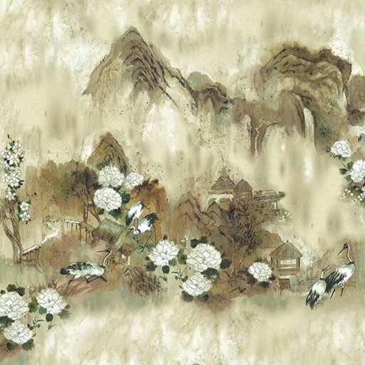 Le papier peint Kasgar de la collection Random Chinoiseries de Coordonné dévoile un village niché au pied des montagnes, dans un style inspiré de la Chinoiserie. On y découvre des huttes et des pagodes en bois, enveloppées dans une brume mystérieuse. .