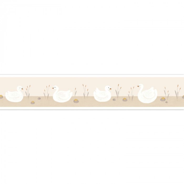 La Frise Léonie de la collection Rose & Nino de Casadéco met en scène de gracieux cygnes sur des teintes délicates comme le rose nude et le beige crème. Elle apporte une touche de calme et de charme naturel aux chambres d'enfants.